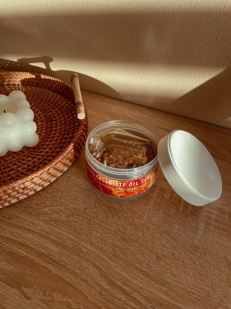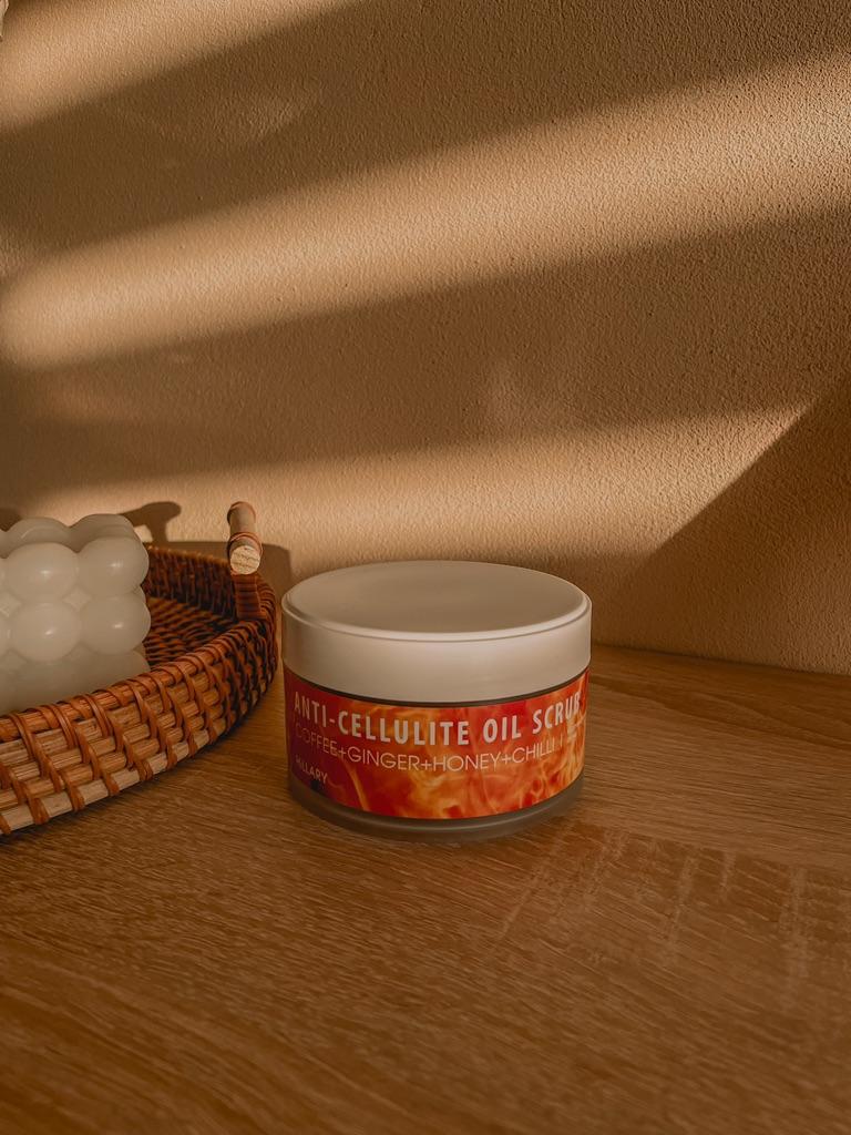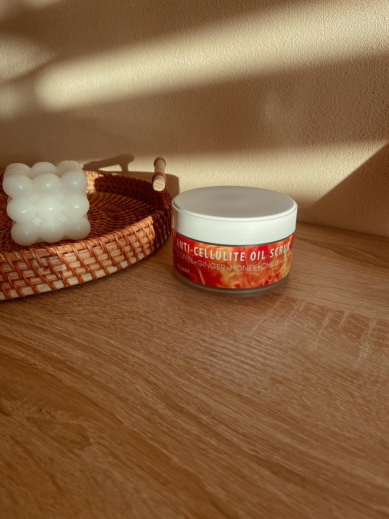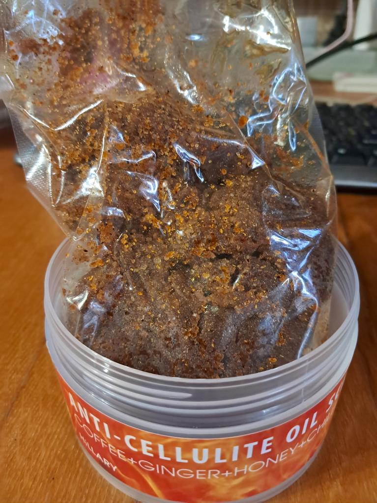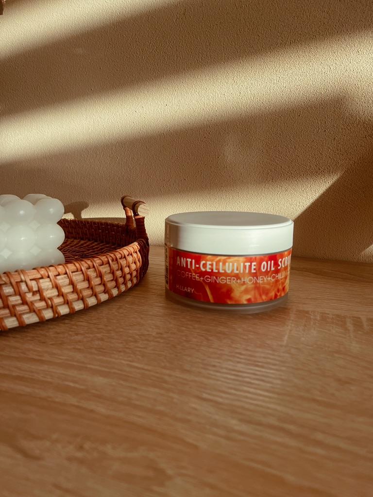 Hillary Anti-celulitida Oil Scrub je přírodní pikantní solný peeling s medem, mletou kávou, zázvorem a chilli. Pomáhá dosáhnout rychlého vizuálního efektu odstranění „pomerančové kůry“. Kůže se stává napjatou, pevnou, rovnoměrnou a hladkou. Díky hřejivým vlastnostem v kombinaci s masážním účinkem křoviny na sebe výsledek nenechá dlouho čekat..