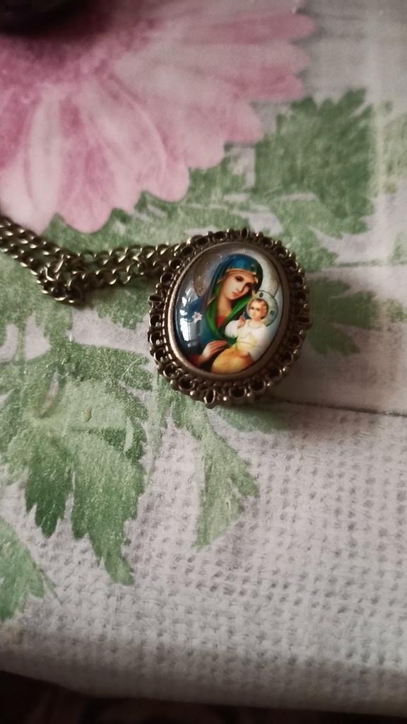 Bronzové oválné kapesní hodinky pro ženy Kapesní hodinky se vzorem Panny Marie pro unisex analogové kapesní hodinky Quartz náhrdelník