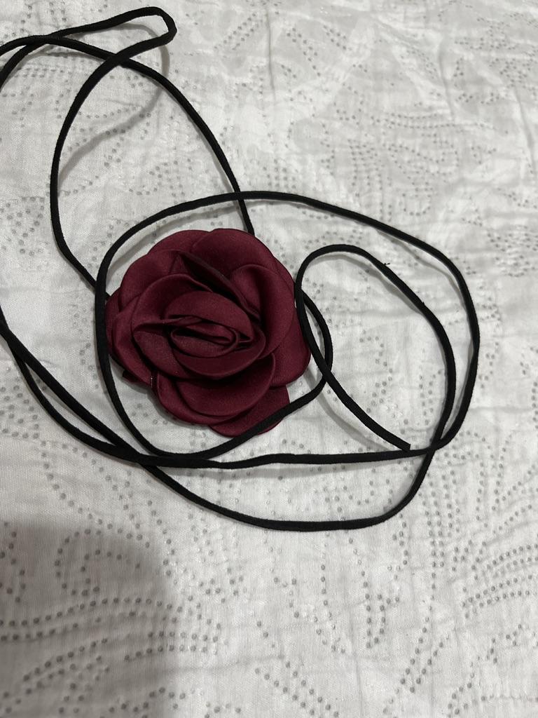 Dámský sametový límec s květem Camellia Rose Flower Choker Nastavitelný dlouhý český Vintage