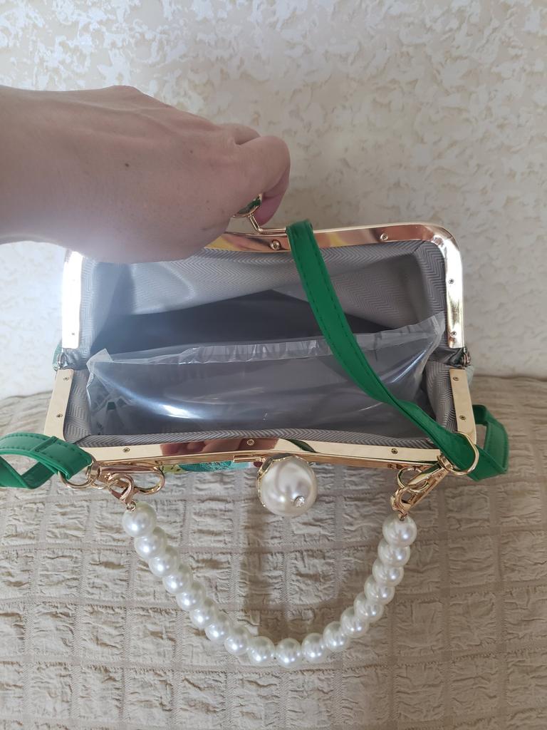 Elegantní Dámské Zelené Růžové Tašky přes rameno Plátěné Klipsy Módní Dámské Perly Kabelka Denní Retro Univerzální Kabelky Crossbody Řetízek