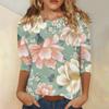 Dámské módní ležérní tričko s kulatým výstřihem a tříčtvrtečním rukávem s potištěným tričkem