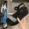 fashion Delicate Crystal Buckle Shoes Woman Brand Sandals Flats Heels Thicken Soled Sandalias 2024 Students Muffins Platform Shoes