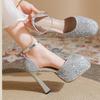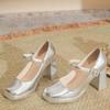 Dívčí Mary Jane Třpytivé šaty Boty Vysoký podpatek Platforma Pásek Spona Ženy Princezna Lodičky Svatební Párty Bling Zlatá Stříbrná