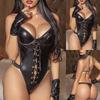 Zábavné spodní prádlo Sexy černé dámské plavecké šaty Lakované kožené spodní prádlo s dutým panelem