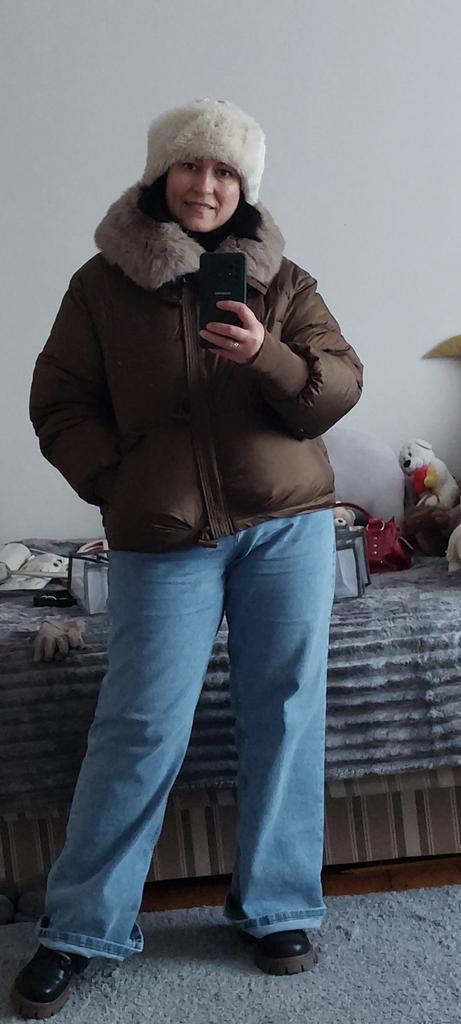 Bunda plně odpovídá velikosti a propagační fotografii prodejce. Kvalita je dobrá Náplň je santepon, rovnoměrně rozložená. Svrchní látka je kvalitní, lehce šustí, barva je moc krásná, podšívka je také kvalitní, není levná. Zámek je plastový, lakovaný, aby vypadal jako kovový. Kožešinový límec vypadá velmi decentně. Manžety na rukávech jsou z kvalitního úpletu S výrobkem jsem velmi, velmi spokojená. Děkujeme. 🤎 PS: díky za dárek, je to již třetí od tohoto prodejce, ale je moc pěkný. Ještě dodám: přidělaný límec se hodně zacuchá a nařase kolem krku, což mě rozčiluje a za chvíli ztratí svůj decentní vzhled.🤨