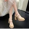 Fashion Thick Heels Shoes Women Buckle Strap Square Toe Pumps Woman Med Leather Shoes Female