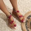 Women's fashion large size slippers summer new round head set toe fine with flowers soft sole non-slip flat shoes