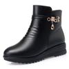Black Soft Leather Ankle Boots for Women Autumn Winter Thick Wool Short Boot Wedges Shoes Comfortable Mom's Cotton Bota