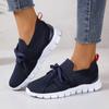 Fashion Autumn New Flat Single Shoes Women's Round Head Knitted Mesh Fabric Breathable Front Lacing Soft Sole Non-slip Sports Shoes