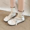 Flat Mary Jane Shoes for Women Casual Spring Autumn Shallow Mouth Single Shoes Cross Tie Buckle Flats Beige Ankle Strap Loafers