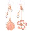 STUNNER Japonský styl kapací asymetrický přívěsek třešňového květu růžové jemné a roztomilé dlouhé náušnice trojrozměrné (pryskyřicové náušnice)