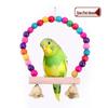 Wooden Bird Cage Stand Parrot Hanging Swing with Colorful Beads Bell Resting Rack Toy