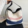 Small Canvas Splicing Large Capacity Bucket Bag Wide Shoulder Strap Fashion All-in-one Striped Shoulder Bag