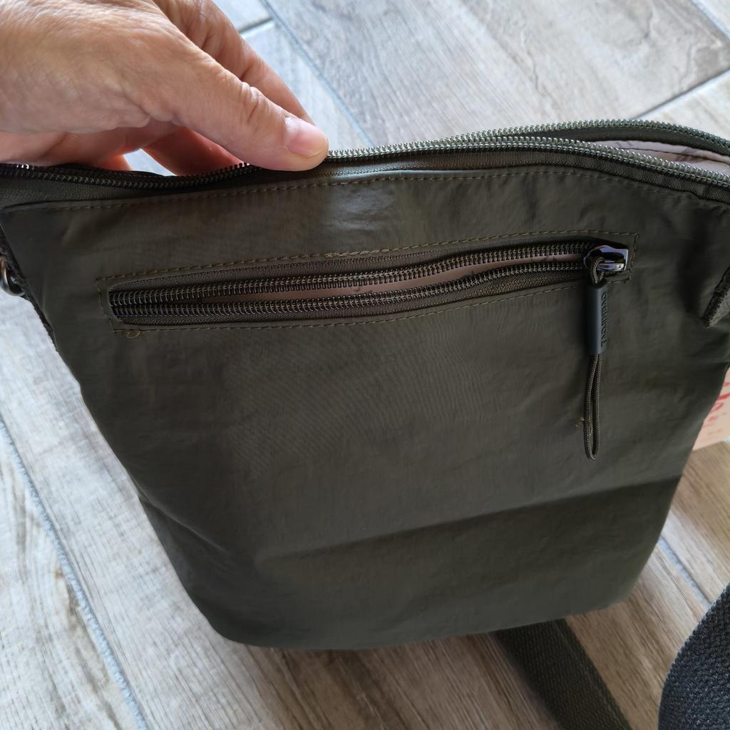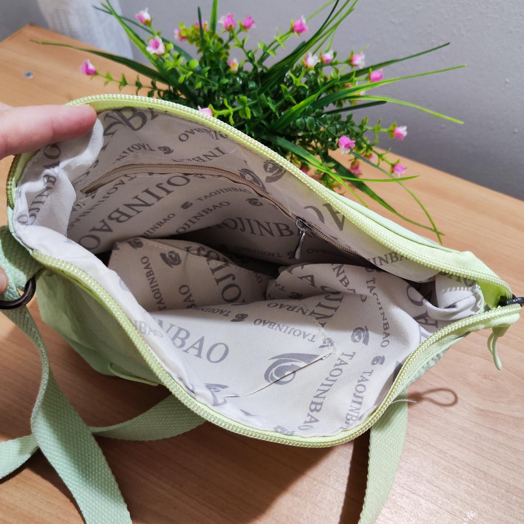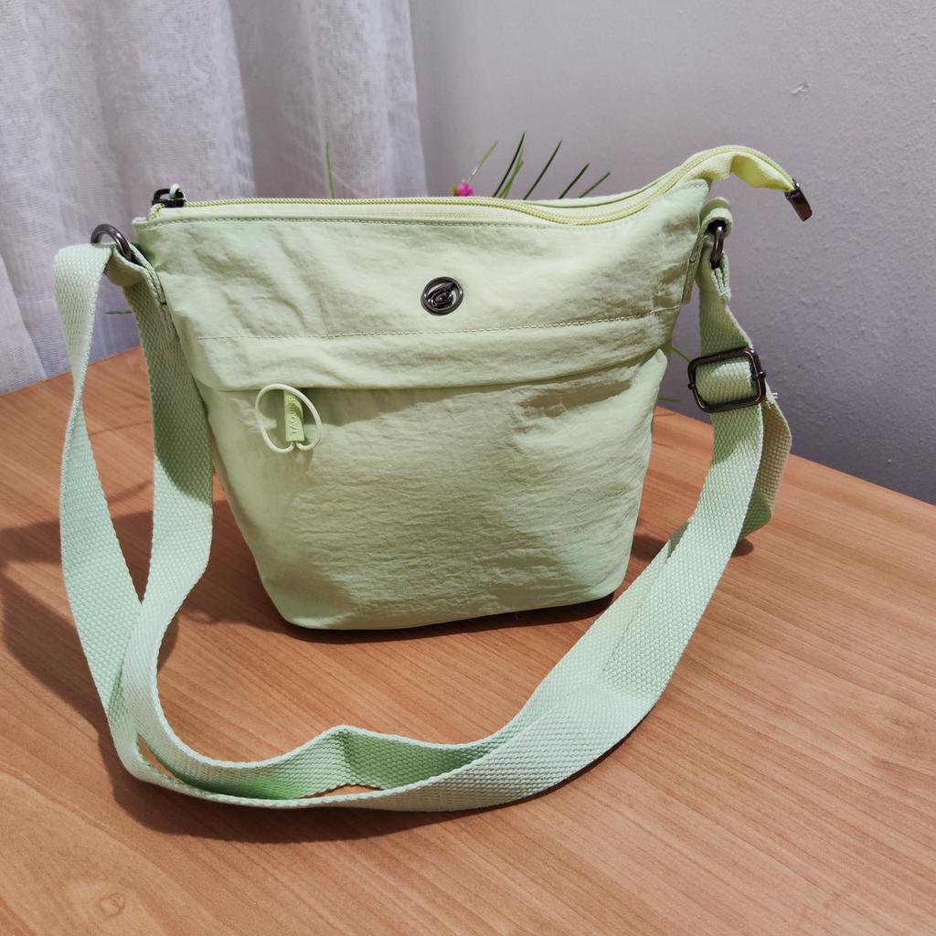 TAŠKA NA RAMENO malá taška přes rameno vybavená neodnímatelným, ale nastavitelným plátěným popruhem. Taška má 2 vnitřní kapsy, jednu se zipem a jednu bez. Zvenku po obou stranách kapsa uzavíratelná na zip. ale pohodlná vnější kapsa uzavíratelná na zip, kovové části. Dostupné v různých barvách . Já jsem si vybral lesní zelenou. Materiály: látka dobré tloušťky, taška je podšitá. Švy jsou čisté, bez zápachu. Dorazil do Itálie za 19 dní se sledovanou zásilkou. Balení: celofánový obal. Doporučený nákup 👌