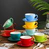 Vintage keramické hrnky, jednobarevné espresso, sada podšálek na kávu, šálek se lžičkou, vynikající odpolední čaj, mléko, šálek cappuccina, pití