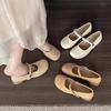 Retro flat-soled single shoes children's niche 2025 spring square head shallow mouth soft leather with skirt Doudou ladyshoes work tide