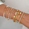IF ME 8Pcs Set Zircon Bracelet Gold Color Multilayer Interlocking Hearts Barefoot Ankle Bracelet On Leg Jewelry Accessories