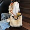 Summer Large Capacity Straw Woven Bag for Women Personalized Hollow Contrast Commuter Bag Hand-held Shoulder Woven Bag