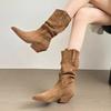 Suede western cowboy boots women's retro medium tube pointed pile boots 2025 autumn and winter new Maillard Martin boots women's