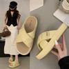 Dámské letní venkovní pantofle 2024 Nová móda Vysoce kvalitní měkké křížené dámské ležérní sandály s tlustým podpatkem na plochém podpatku