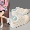 2024 spring new round head lace-up star board shoes small fresh color matching single shoes women's casual sports white shoes