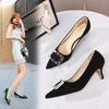 French niche high-end black rhinestone single shoes women's shoes 2024 new spring, autumn and winter temperament pointed high heels