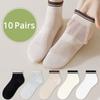 10 Pairs Women Mid Length Socks Trendy Versatile Black White Solid Colors Soft Comfortable Lightweight Breathable Casual Socks