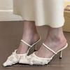 Niche mesh yarn breathable bag head half slippers women's shoes 2025 new spring gentle high heels