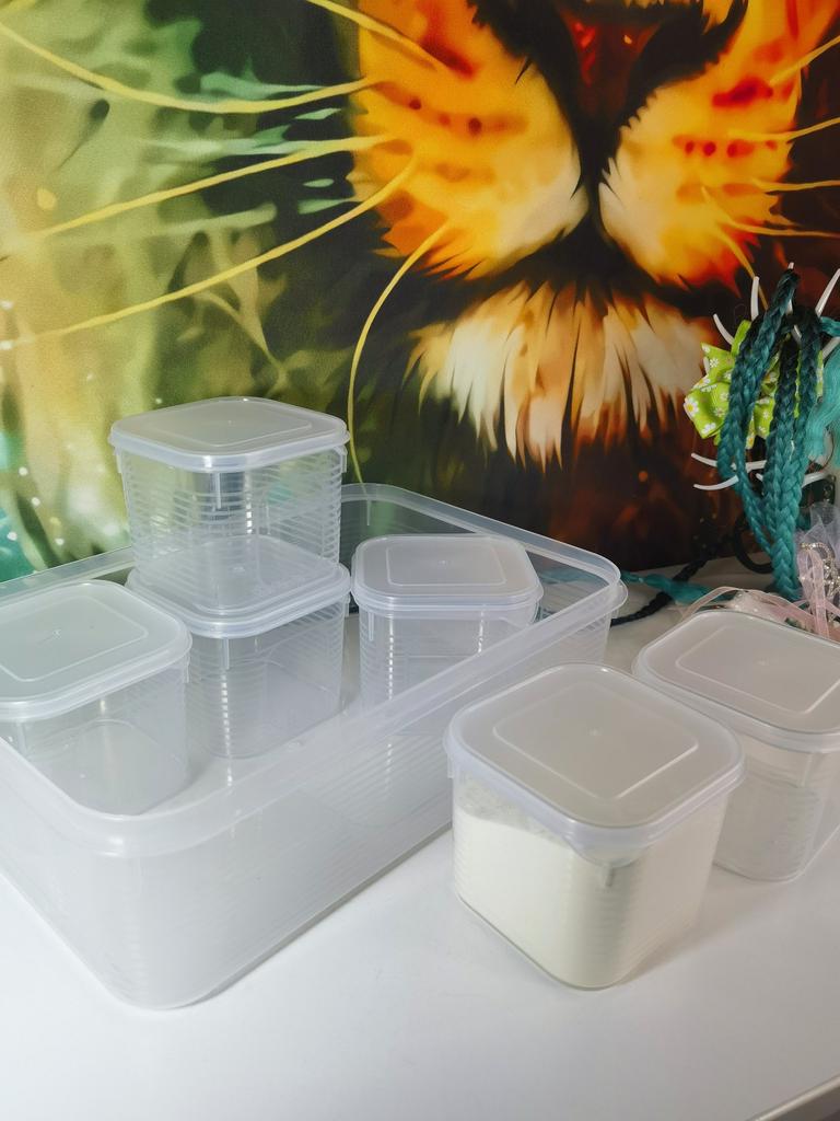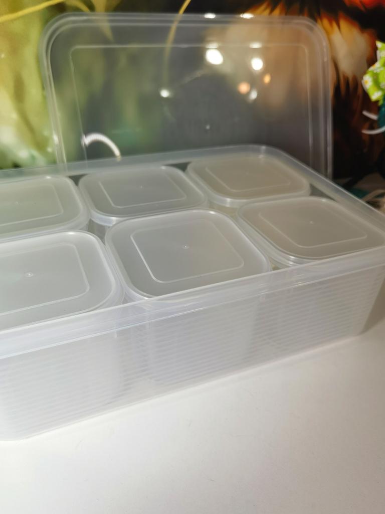 Sada nádob Úžasná sada! Dělám si do práce salát každý den, malá krabička akorát stačí. Používám také sušené mléko do práce, med. Opravdu rád. Nádoby lze použít v mrazničce. Kvalita dobrá, bez zápachu. Plast není tenký, neohýbá se. Neuzavírá se hermeticky. Proto je lepší nepřevracet.