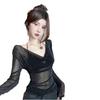 Sheer V-Neck Long-Sleeve Top: Mesh Design, Slim Fit, Chic Spring/Autumn Women's Outerwear.
