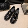Sheepskin version~ thick-soled metal buckle women's leather round head simple one-pedal medium heel small leather shoes