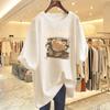 Cotton white short-sleeved t-shirt women's summer new flower print crew neck loose top bottoming shirt