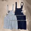 Trendy European & American Women's Mid-Summer Denim Jumpsuit - Pure Cotton, Washed, Pleated, Deep V Lace-Up Shorts