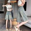 Xiao Wang's Summer Korean Style Loose Plus Size Retro Denim Overalls Shorts