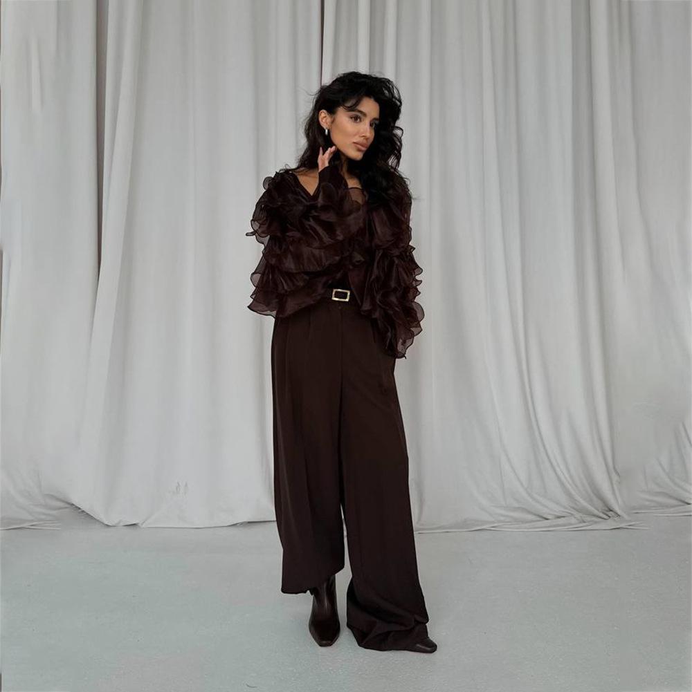 Discover a stylish blend of vintage charm and modern elegance with this shirt from the 2025 Collection. Crafted from high-quality polyester in an intricately woven pattern, this loose-fit shirt features a solid pattern that coordinates effortlessly with any wardrobe. The long sleeve design is complemented by an irregular ruffle detail, adding a whimsical touch. Finished with a classic round neckline, this shirt is perfect for those looking to make a fashion statement with a retro flair.