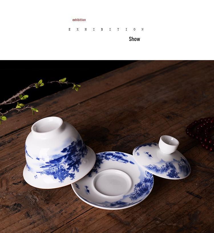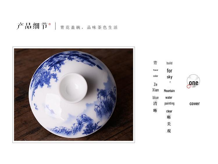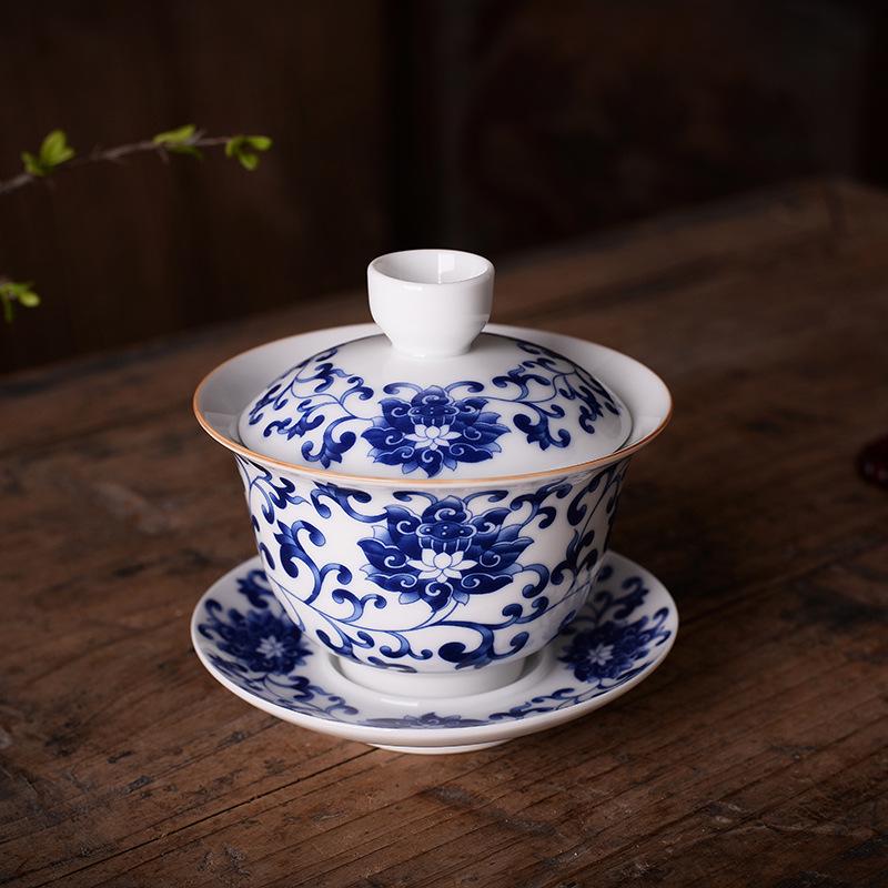 Creative Blue and White Large Ceramic Gaiwan Teacup Set - White Porcelain Kung Fu Sancai Tea Bowl