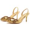7cm Shallow Tip Toe White Wedding Sandals Thin Heels Small Size Rhinestone Chain Wedding Shoes Bride Wedding Photo Shoes