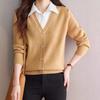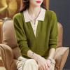 Fashion Color Block Fake Two Pieces Sweater Women Autumn and Winter Polo Collar Casual Thin Office High Quality All-match Top