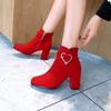 Short boots suede velvet single boots round head large size autumn and winter new red wedding shoes thick heel high heels fashion women