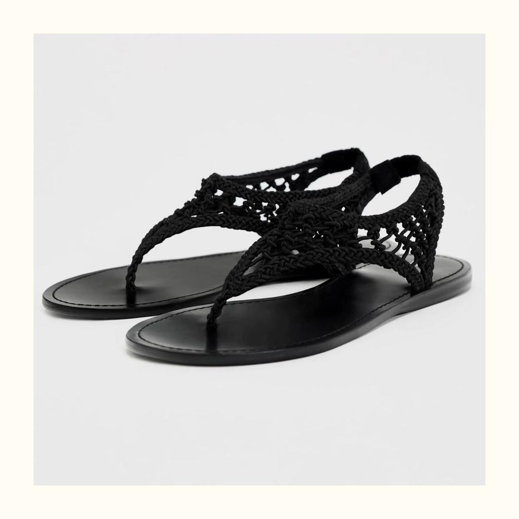 Niche summer new pinch foot handmade knitted flat bottom one pedal cool slippers open toe black mesh hollow sandals women
