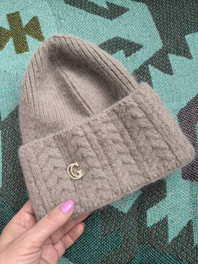 New Style Simple Dandy Winter Hat G Letter Decor Rabbit Fur Beanie Elegant Winter Hats For Women Candy Colors Warm Knit Hats