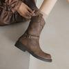 Retro belt buckle flat bottom rivet western boots knight boots short boots women's summer new British Martin boots single boots