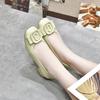 Shallow single shoes women's spring first layer cowhide elastic square head bow one pedal low heel simple