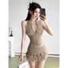 Funkce: Tento jednobarevný dámský top bez rukávů je vesta zdobená trojrozměrnými květinami. Vesta se zapíná na tři knoflíky. Spodní část je sukně. Sukně zakrývající boky zdobí dvě trojrozměrné květiny. Celkový styl je jednoduchý, ale elegantní.