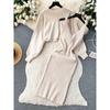 Autumn And Winter Loose V-Neck Knitted Sweater Vintage Pullover Sweater + Mid-Length Half-Body Skirt Two-Piece Set