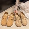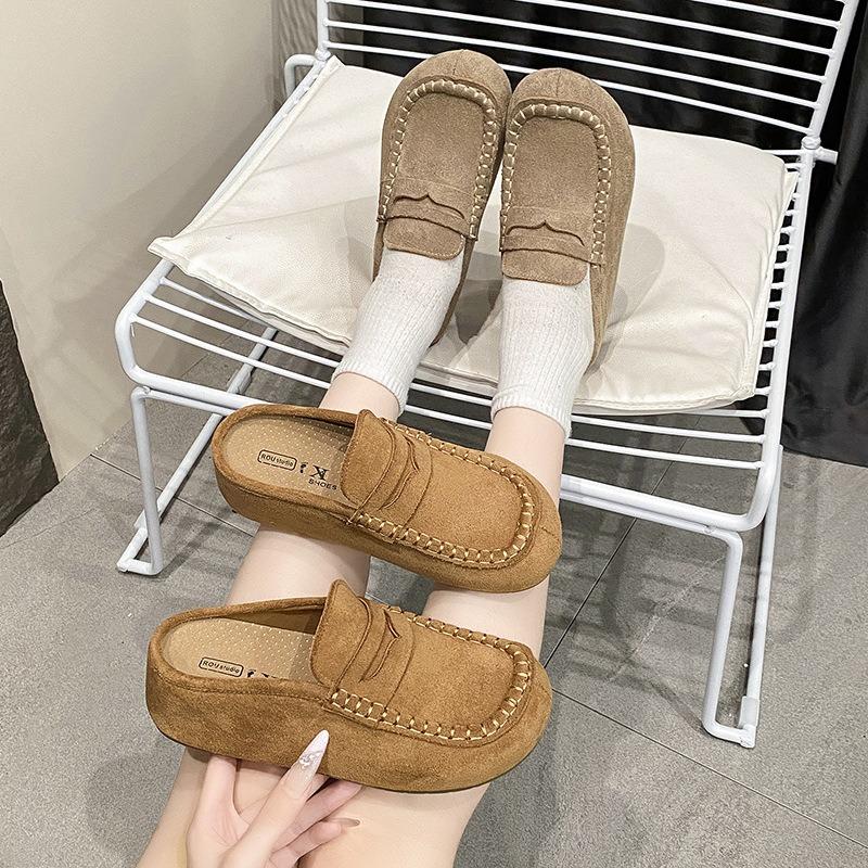Retro old money wind suede casual shoes commuting one pedal leather shoes half slippers women's outer wear