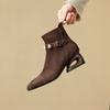 Krazing Pot Sheep Suede Nubuck Autumn Winter Shoes Low Heels Size 43 Modern Boots Square Toe Zipper Retro Ankle Boots