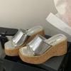 Silver Platform High Heeled Slipper Fashion Bow Party Open Toe Casual Sandals Summer Comfortable Non-Slip Beach Mule Shoe Female