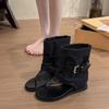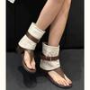 Retro Hong Kong style summer fashion cool boots casual belt buckle toe versatile short boots wedge heel shoes