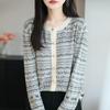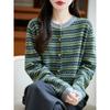 Retro Round-neck Knitted Cardigan, Long-sleeved, Color-blocking Jacquard Loose Top Coat for Autumn and Winter New Style
